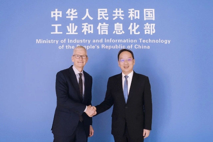 3月20日,工业和信息化部部长李乐成在北京会见苹果公司首席执行官蒂姆·库克。